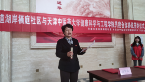 2021年5月11日下午15时许,健康科学与工程学院联合静海区华康街道湖岸栖庭社区居民委员会在湖岸栖庭社区党群服务中心一楼大厅共同举行了华康街道湖岸栖庭社区与天津中医药大学健康科学与工程学院院地共建合作协议签约仪式暨“食全食美”系列讲座开讲仪式。健康科学与工程学院党总支书记孟繁洁教授、华康街道办事处副主任高卫东同志出席了本次活动。华康街道湖岸栖庭社区两委委员、健康科学与工程学院党员教师,学生党、团员代表,学生志愿者以及社区居民参加了本次活动。
