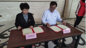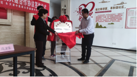 在双方领导简短地致辞后,孟繁洁书记与华康街道办事处副主任高卫东同志共同签署了《华康街道湖岸栖庭社区与天津中医药大学健康科学与工程学院共建合作协议》并共同为“思政育人共建基地”揭牌。