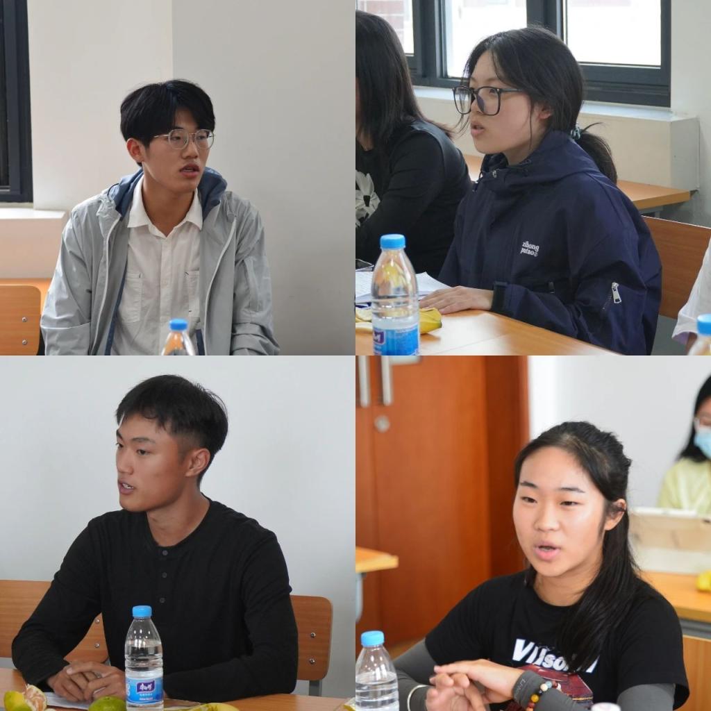 座谈交流环节,与会同学们畅所欲言。从个人成长经历、校园学习生活感悟、职业发展规划以及成长困惑等方面进行了分享交流。刚刚获得硕士研究生推免资格的2位20级学姐分别分享了大学4年的成长经历、成果收获和经验总结。22级应用统计学专业的2位同学分享了暑期专业实践的心得与收获。学院领导们认真聆听了同学们的交流分享和问题反馈,并针对问题与困惑给予了耐心的解答和指导。